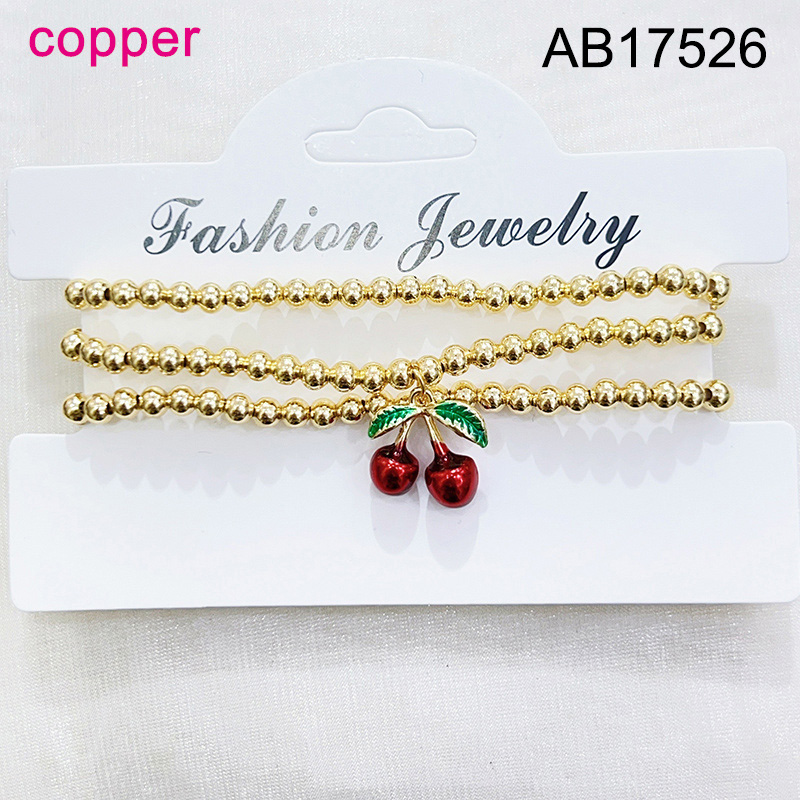 Level B Fashion Jewelry New Trendy Women Jewelry Niche Design Layered Jewelry Round Beads Summer fruit style Cherry Golden Elastic Bracelet;Material:copper (cobre)