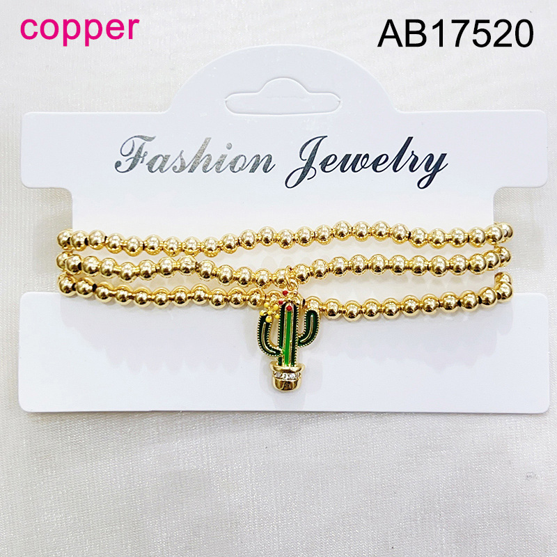 Level B Fashion Jewelry New Trendy Women Jewelry Niche Design Layered Jewelry Round Beads Cactus Golden Elastic Bracelet;Material:copper (cobre)