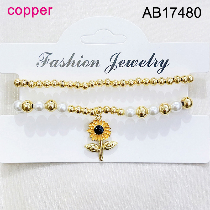 Level B Fashion Jewelry New Trendy Women Jewelry Niche Design Layered Jewelry Pearl Style/Plastic Beads Round Beads Flower Golden Elastic Bracelet;Material:copper (cobre)