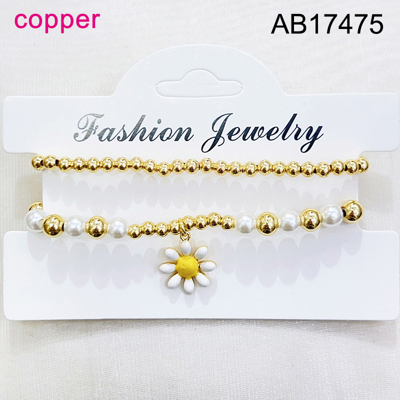 Level B Fashion Jewelry New Trendy Women Jewelry Niche Design Layered Jewelry Pearl Style/Plastic Beads Round Beads Flower Golden Elastic Bracelet;Material:copper (cobre)