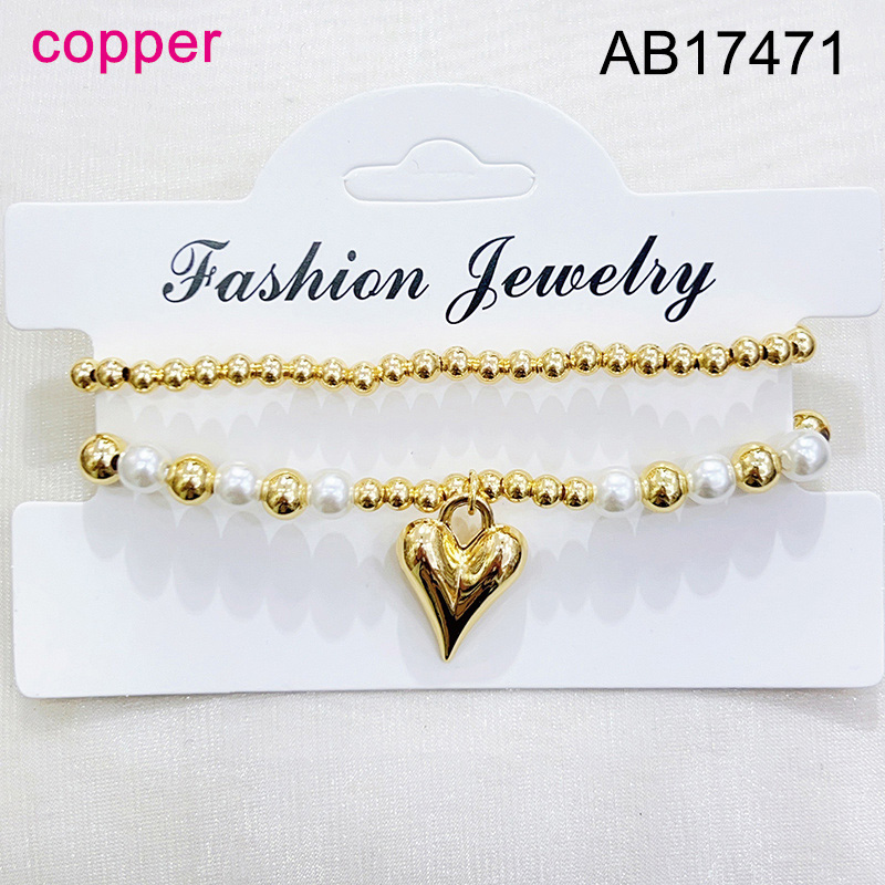 Level B Fashion Jewelry New Trendy Women Jewelry Niche Design Layered Jewelry Pearl Style/Plastic Beads Round Beads Heart Golden Mother's Day Elastic Bracelet;Material:copper (cobre)