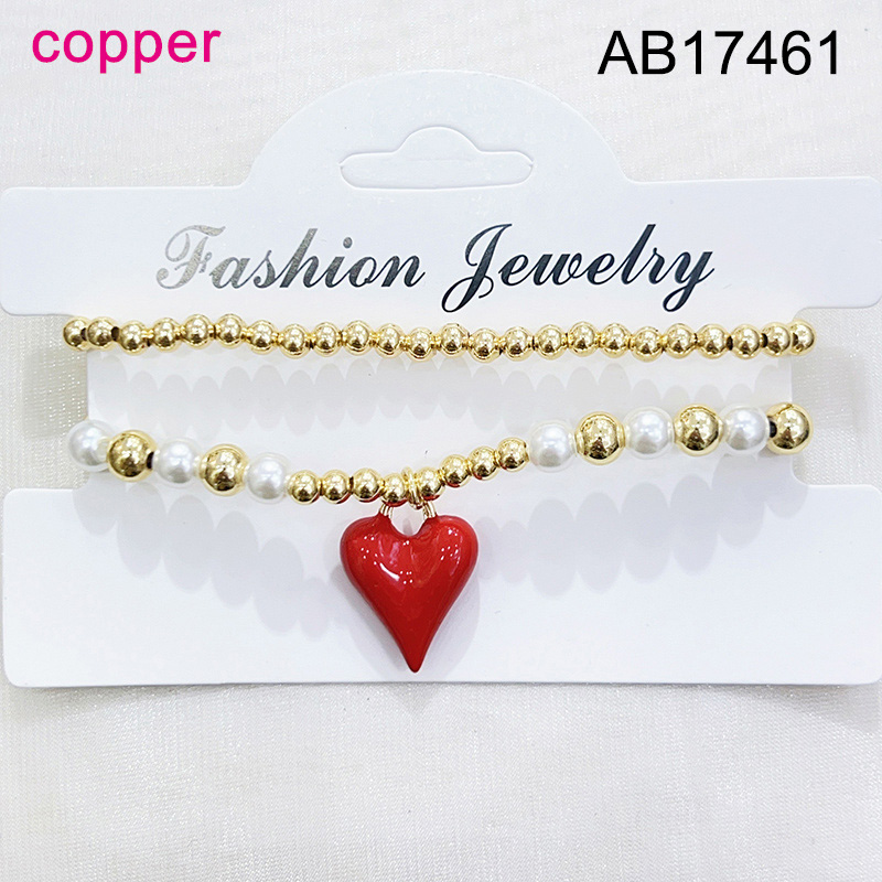 Level B Fashion Jewelry New Trendy Women Jewelry Niche Design Layered Jewelry Pearl Style/Plastic Beads Round Beads Heart Golden Mother's Day Elastic Bracelet;Material:copper (cobre)