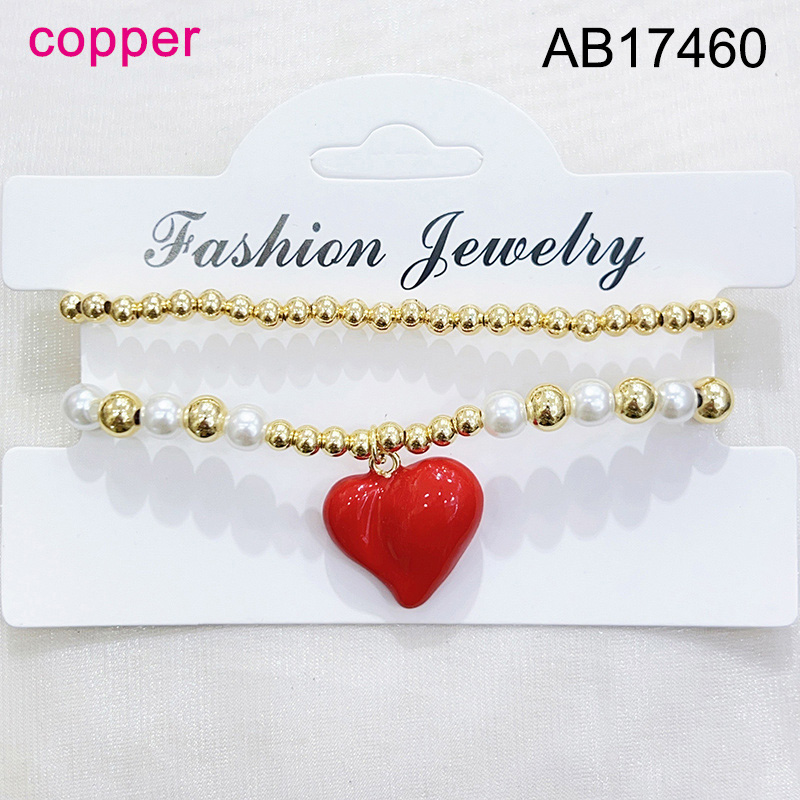 Home > Fashion Jewelry > Fashion Jewelry Bracelet > Level B Fashion Jewelry New Trendy Women Jewelry Niche Design Layered Jewelry Pearl Style/Plastic Beads Round Beads Heart Golden Mother's Day Elastic Bracelet;Material:copper (cobre)