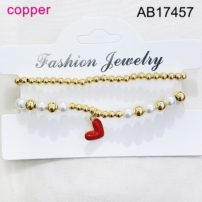 Home > Fashion Jewelry > Fashion Jewelry Bracelet > Level B Fashion Jewelry New Trendy Women Jewelry Niche Design Layered Jewelry Pearl Style/Plastic Beads Round Beads Heart Golden Mother's Day Elastic Bracelet;Material:copper (cobre)