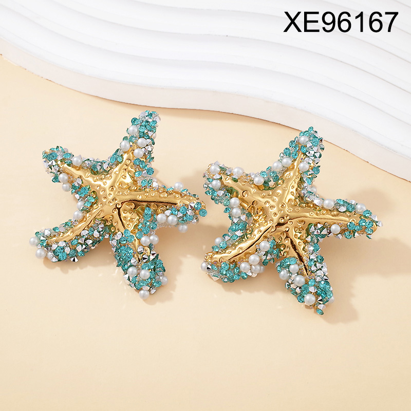 Level B Stainless Steel New Trendy Women Jewelry Pearl Style/Plastic Beads Summer beach Animal Starfish Golden Earrings