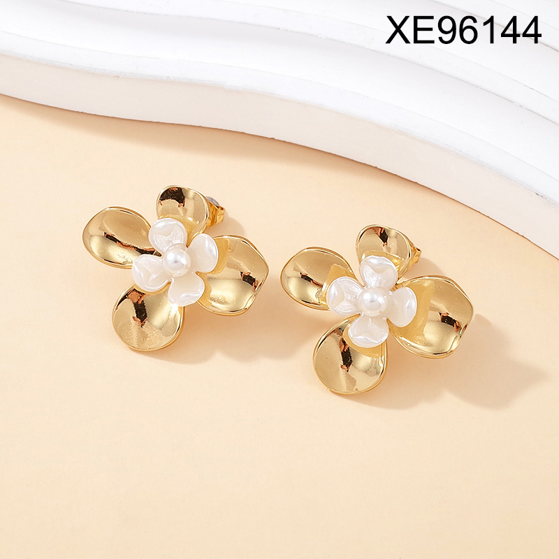 Level B Stainless Steel New Trendy Women Jewelry Pearl Style/Plastic Beads Flower Golden Earrings