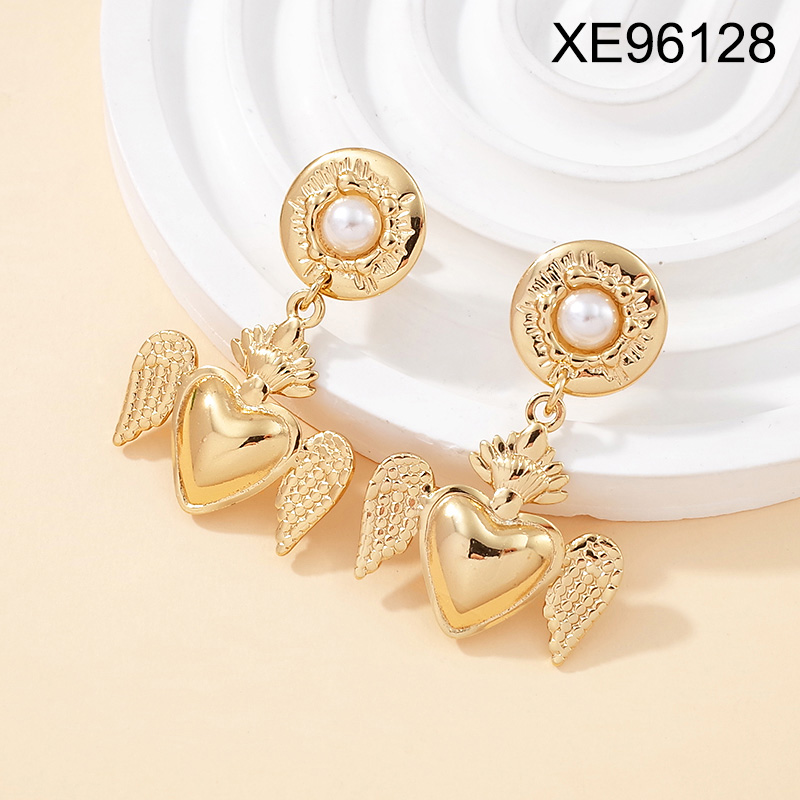 Level B Stainless Steel New Trendy Women Jewelry Pearl Style/Plastic Beads Heart Golden Mother's Day Earrings
