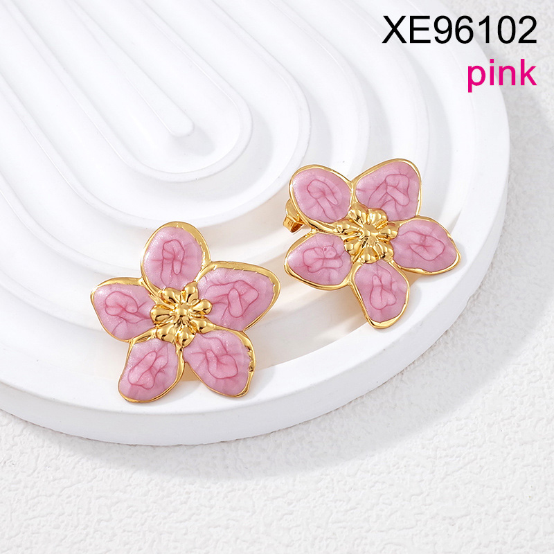 Home > Stainless Steel Earrings > Level B Stainless Steel New Trendy Women Jewelry Drip Oil/Enamel Pink Flower Golden Earrings