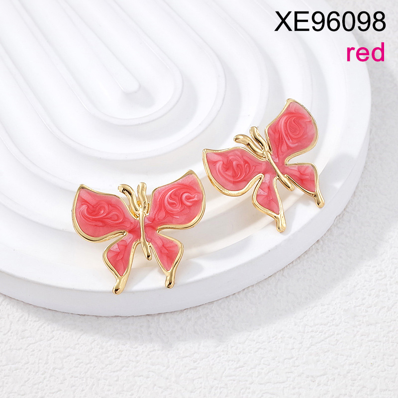 Level B Stainless Steel New Trendy Women Jewelry Drip Oil/Enamel Red Animal Butterfly Golden Earrings