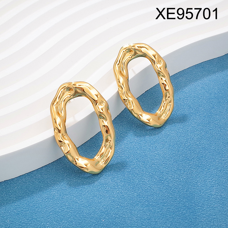 Home > Stainless Steel Earrings > Hot Earrings > Level C Stainless Steel New Trendy Women Jewelry Oval Golden Earrings