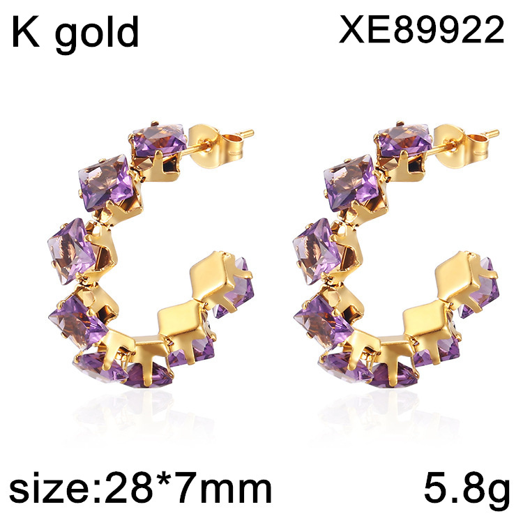 Home > Stainless Steel Earrings > Hot Earrings > Stainless Steel Jewelry New Trendy Golden Purple CZ Earring
