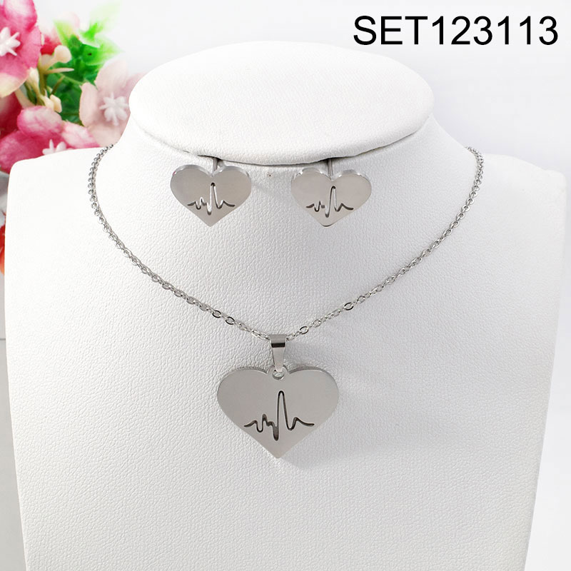 Level B Stainless Steel Jewelry New Trendy Valentine's Day Heart Steel color Valentine's Day Cutting SET