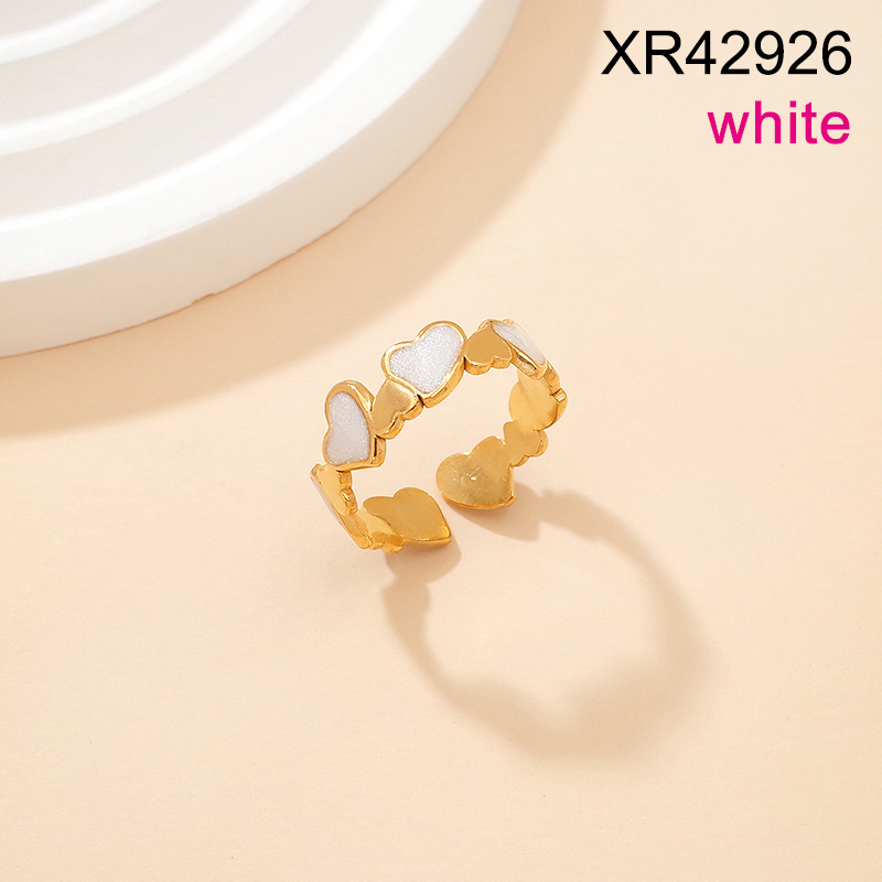 Level B Stainless Steel New Trendy Women Jewelry Drip Oil/Enamel White Heart Golden Mother's Day Open Rings;Ring size can be adjusted freely