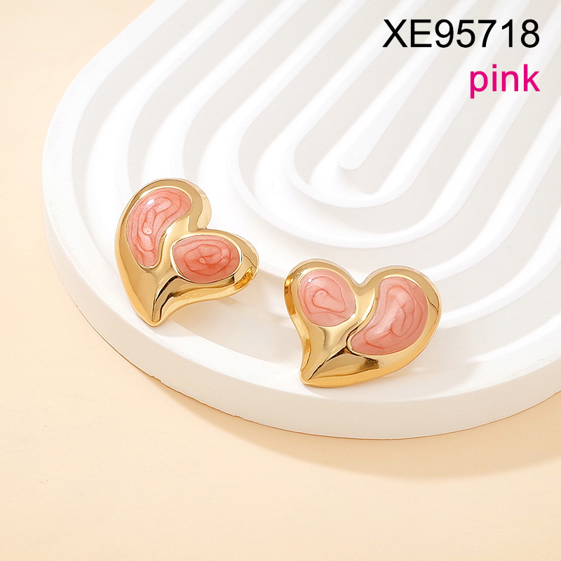 Home > Holiday Jewelry > Level B Stainless Steel New Trendy Women Jewelry Drip Oil/Enamel Pink Heart Golden Mother's Day Earrings