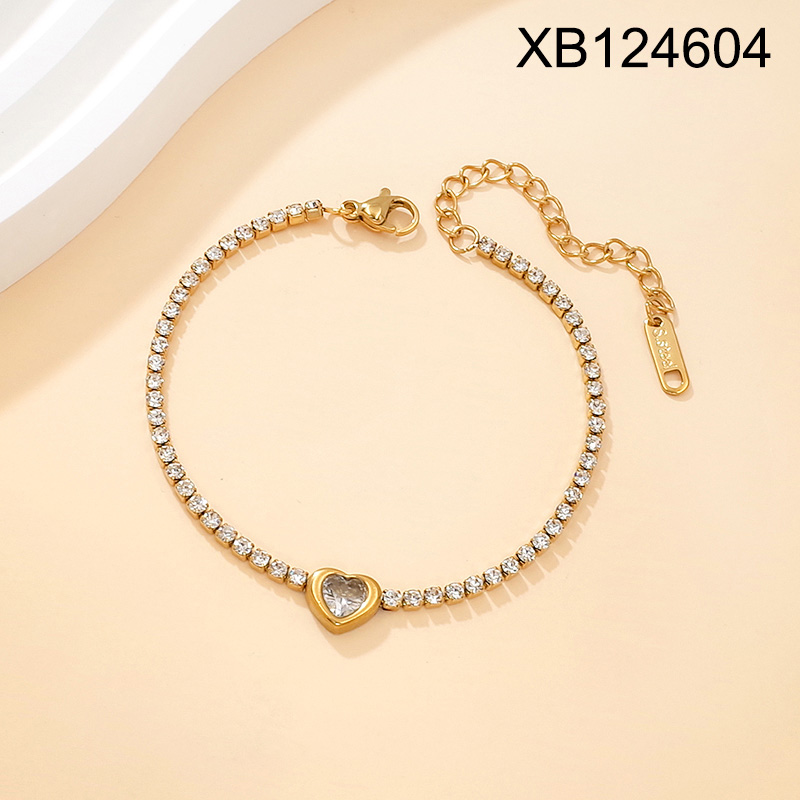 Home > Holiday Jewelry > Level B Stainless Steel New Trendy Women Jewelry Heart Golden Mother's Day Rhinestone Tennis Chain Bracelet