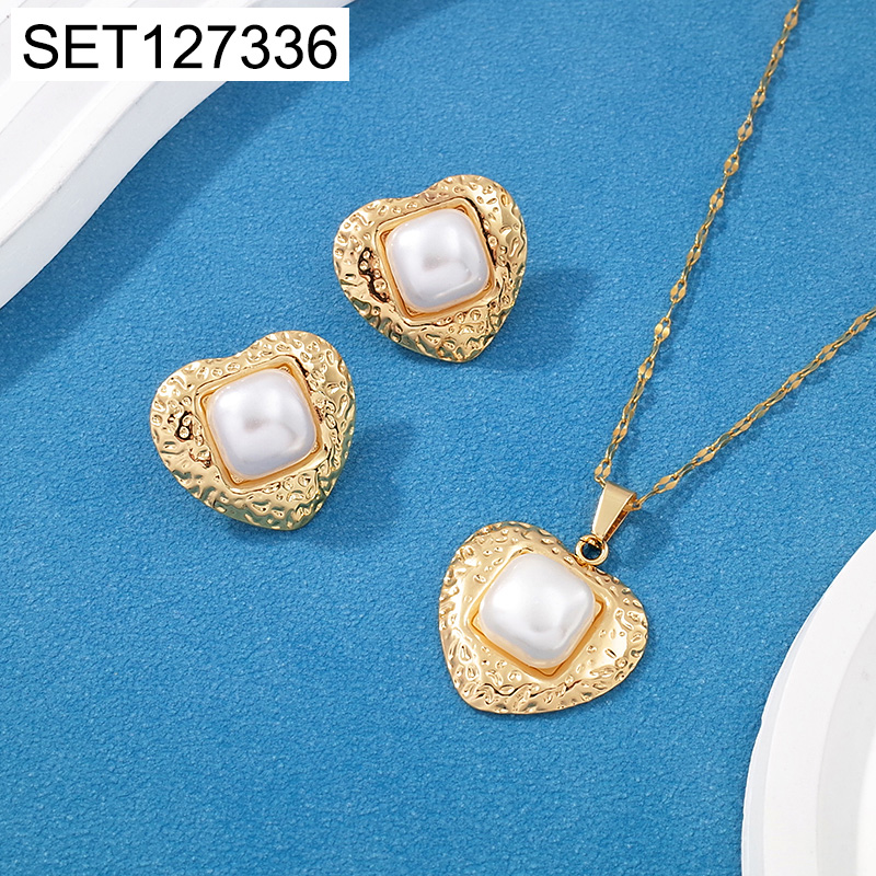 Level C Stainless Steel New Trendy Women Jewelry Pearl Style/Plastic Beads Heart Golden Mother's Day SET