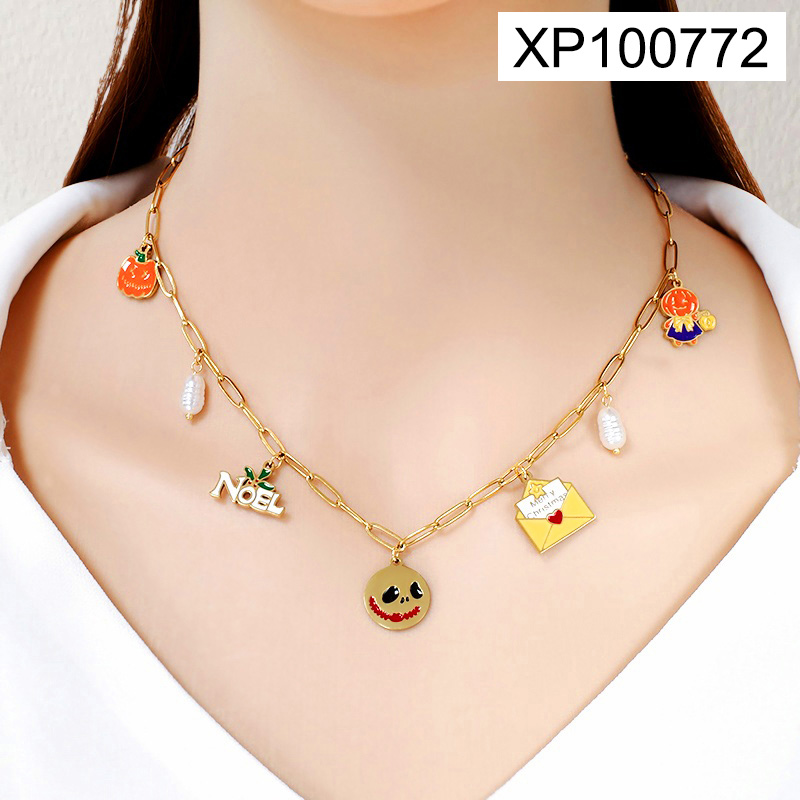 Home > Holiday Jewelry > Level C Stainless Steel New Trendy Women Jewelry Drip Oil/Enamel Halloween Golden Pendant