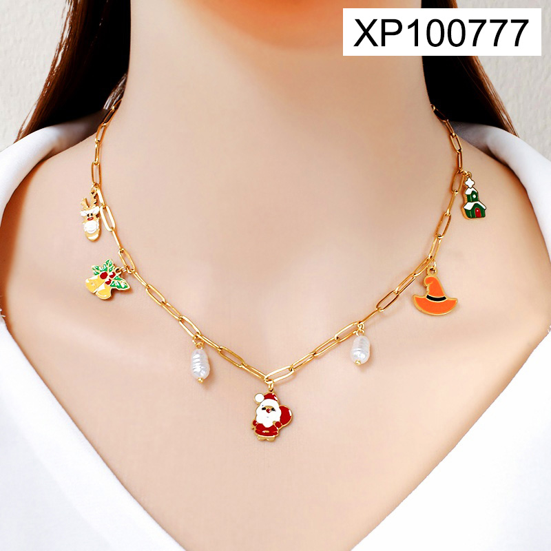 Home > Holiday Jewelry > Level C Stainless Steel New Trendy Women Jewelry Drip Oil/Enamel Christmas Golden Pendant