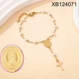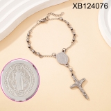 Level B Stainless Steel New Trendy Jewelry Dark red Bead Chain Steel color Religious Scriptures Necklace