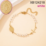 Level B Stainless Steel New Trendy Women Jewelry Bead Chain Religion Cross Golden Necklace