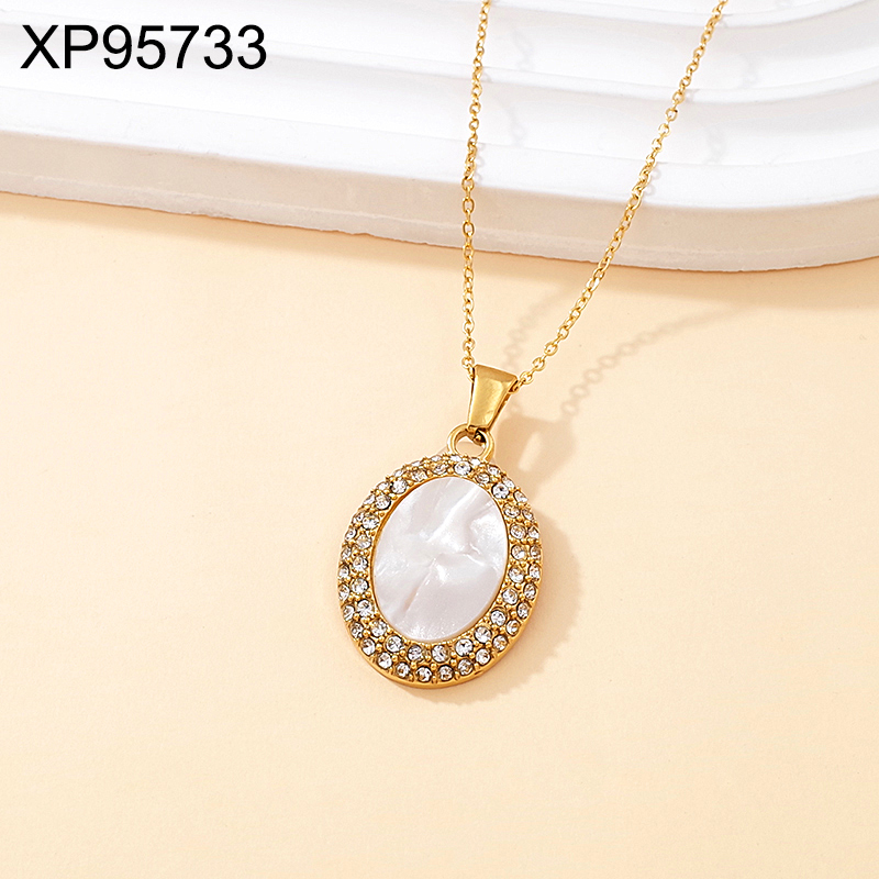 Level B Stainless Steel Jewelry New Trendy Sticky Stone Oval Golden Pendant