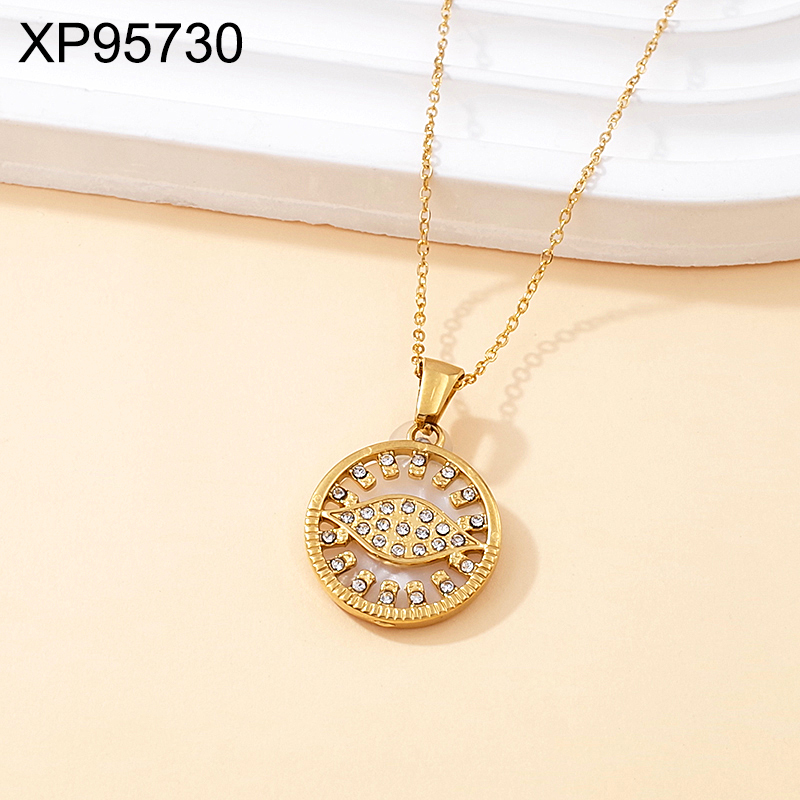 Level B Stainless Steel Jewelry New Trendy Sticky Stone Round Golden Pendant