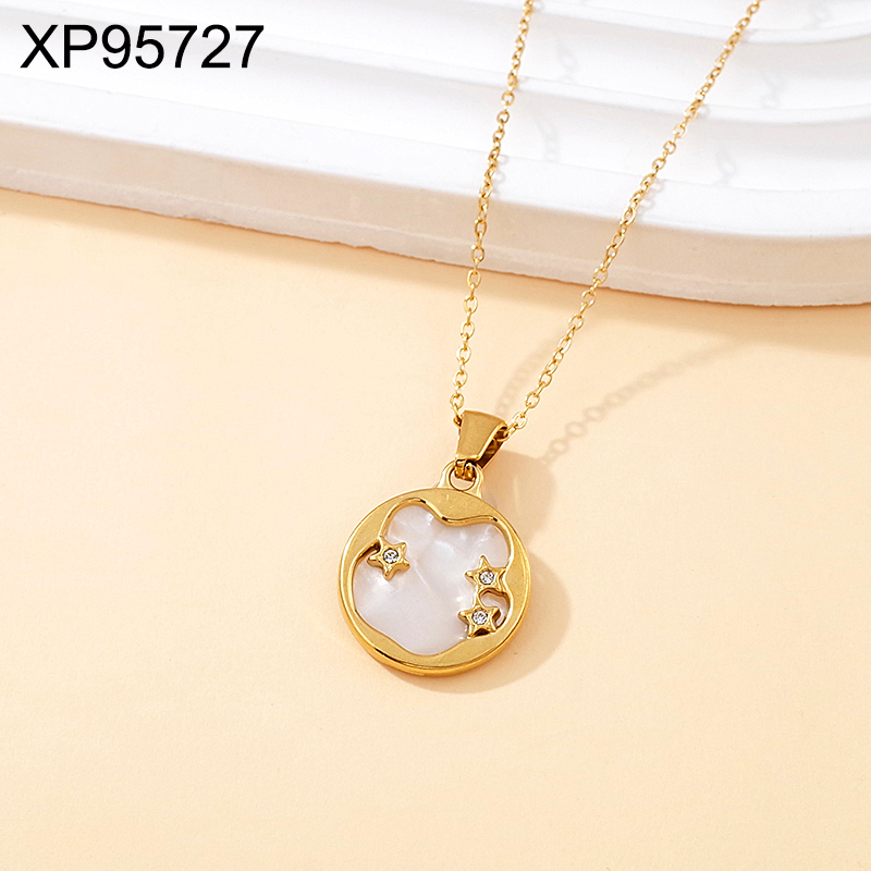 Level B Stainless Steel Jewelry New Trendy Sticky Stone Round Golden Pendant