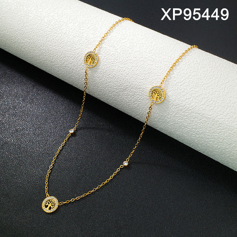 Level B Stainless Steel Jewelry New Trendy Sticky Stone Tree Golden Pendant
