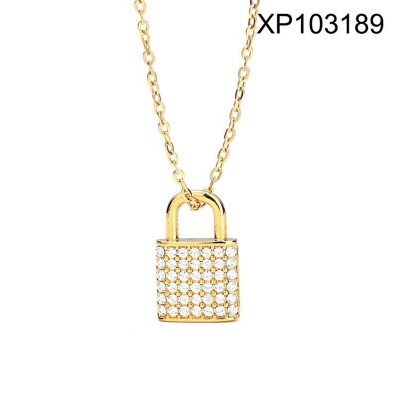 Home > Stainless Steel Pendants > Crystal Pendants > Level B Stainless Steel New Trendy Women Jewelry Lock Golden Valentine's Day Pendant