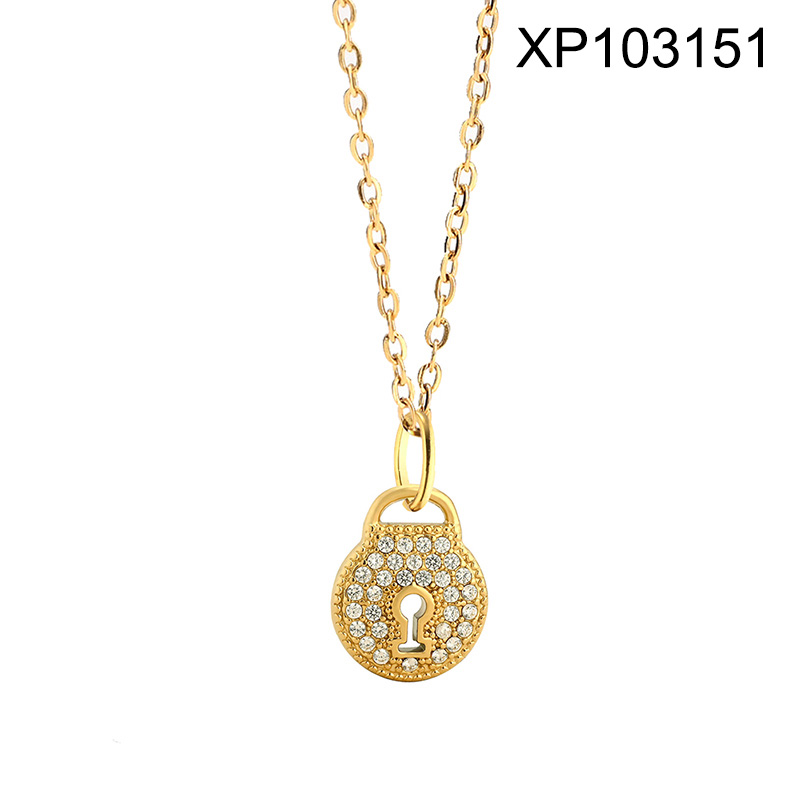 Home > Stainless Steel Pendants > Crystal Pendants > Level B Stainless Steel New Trendy Women Jewelry Lock Golden Valentine's Day Pendant