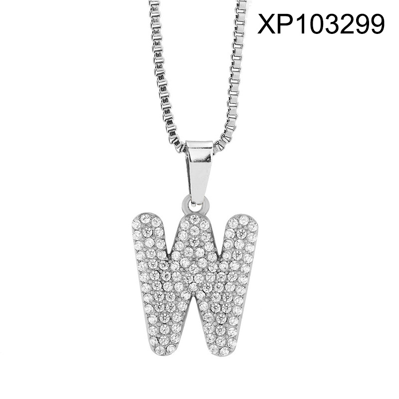 Home > Stainless Steel Pendants > Crystal Pendants > Level B Stainless Steel New Trendy Women Jewelry Letter W Steel color Pendant