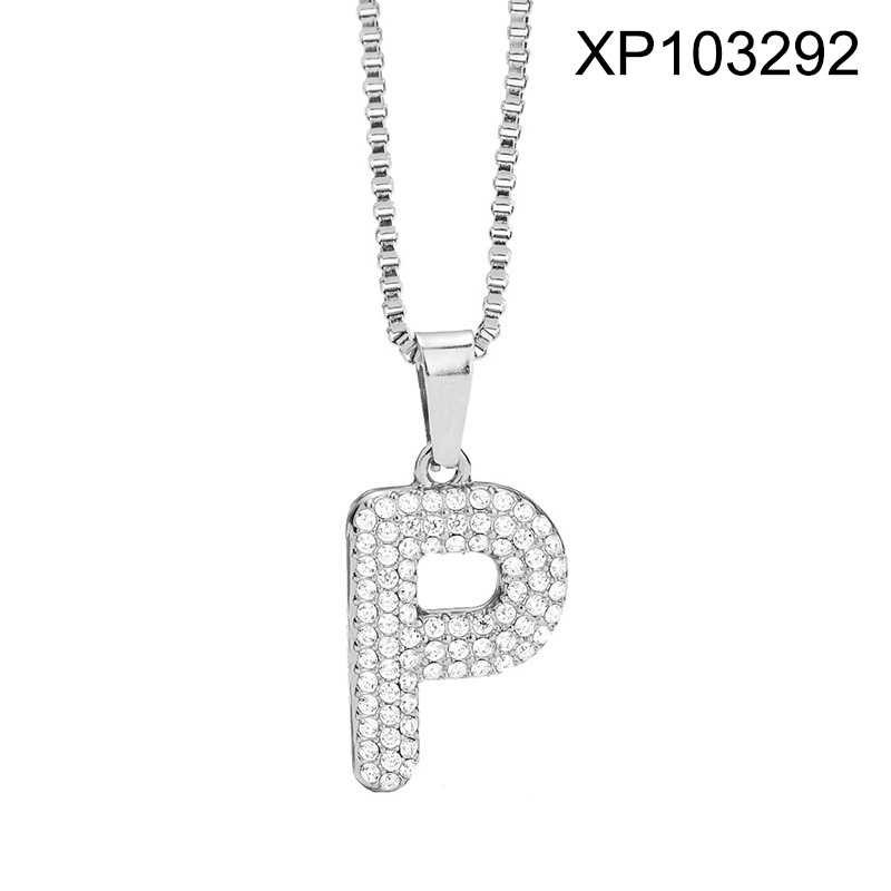 Home > Stainless Steel Pendants > Crystal Pendants > Level B Stainless Steel New Trendy Women Jewelry Letter P Steel color Pendant