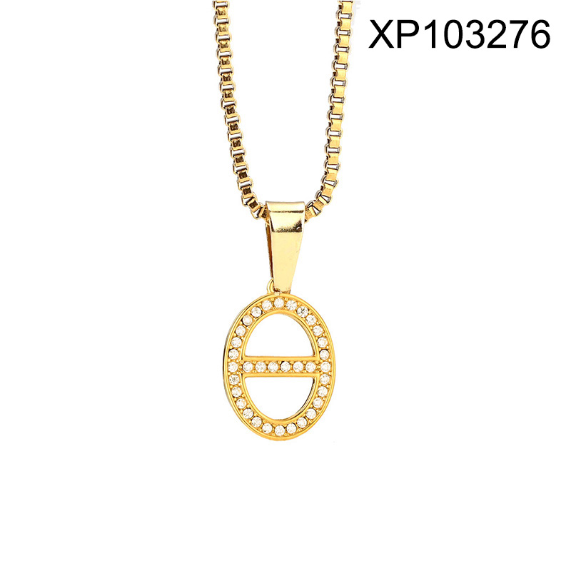 Home > Stainless Steel Pendants > Crystal Pendants > Level B Stainless Steel New Trendy Women Jewelry Pig nose Oval Golden Pendant
