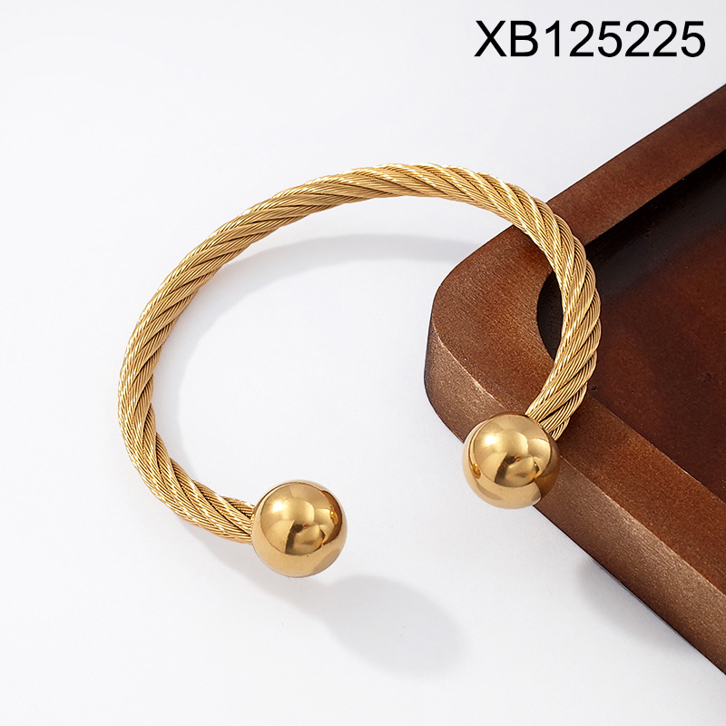 Level B Stainless Steel New Trendy Women Jewelry Round Beads Golden Wire Open Bangle;Bangle size can be adjusted freely