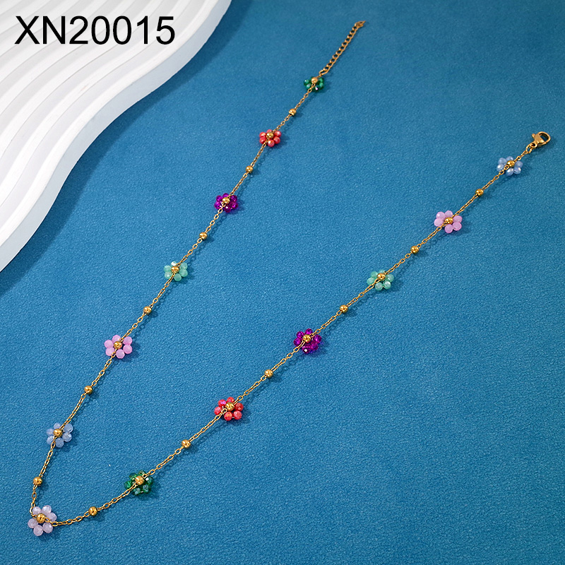 Home > Stainless Steel Necklaces > Other Necklaces > Level B Stainless Steel New Trendy Women Jewelry Mixed color Flower Golden Necklace