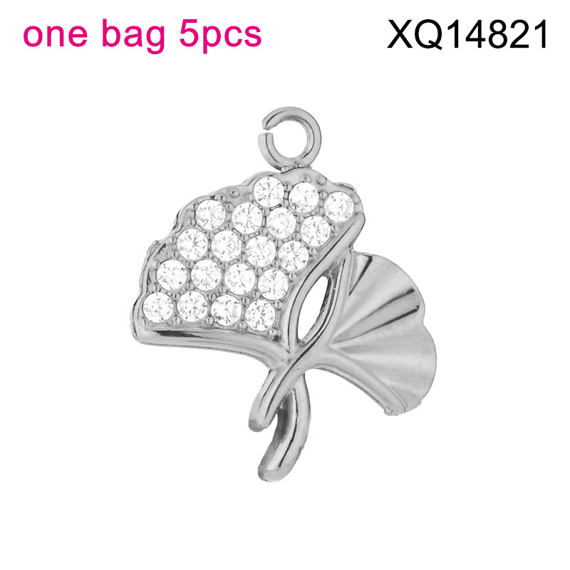 Level B Stainless Steel New Trendy Jewelry Ginkgo leaf Steel color DIY Charms